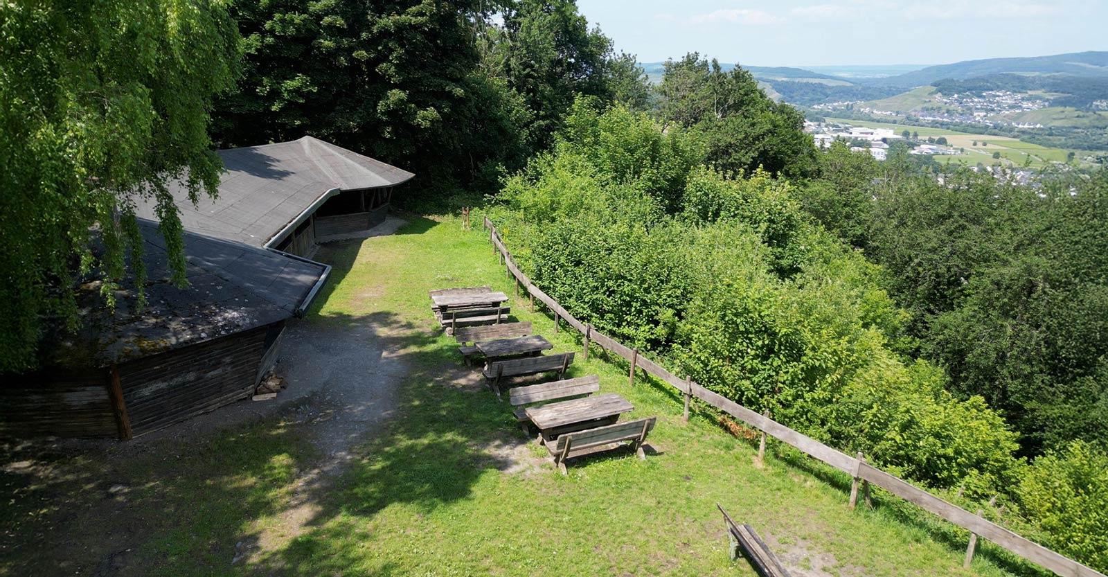 Die Schutzhütte finden sie oberhalb des Ortes an einem ehemaligen Steinbruch gelegen mit wunderschönenem Ausblick auf das Moseltal mit Bernkastel und Kues.